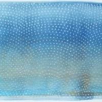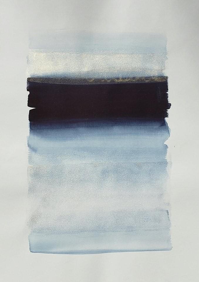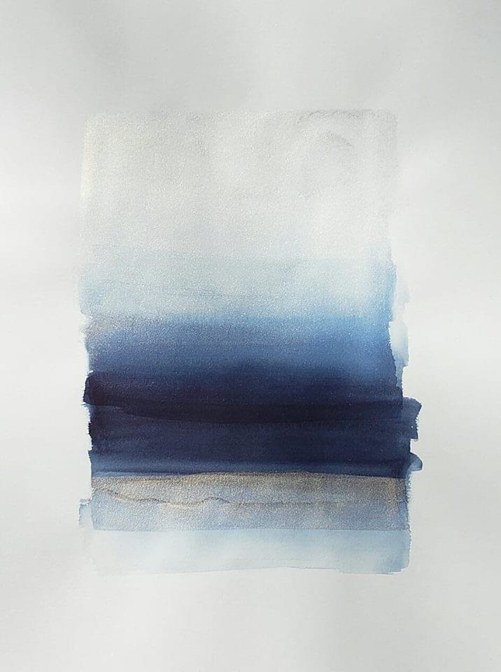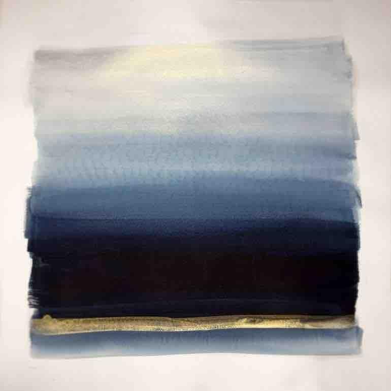 In addition to gum arabic, the age-old watercolor binder, the pieces heavily use funori, a Japanese seaweed. Often used in archival book binding, the funori is used to lift and carry dense pure pigments over the paper with a unique body and flow not often seen in traditional watercolor.