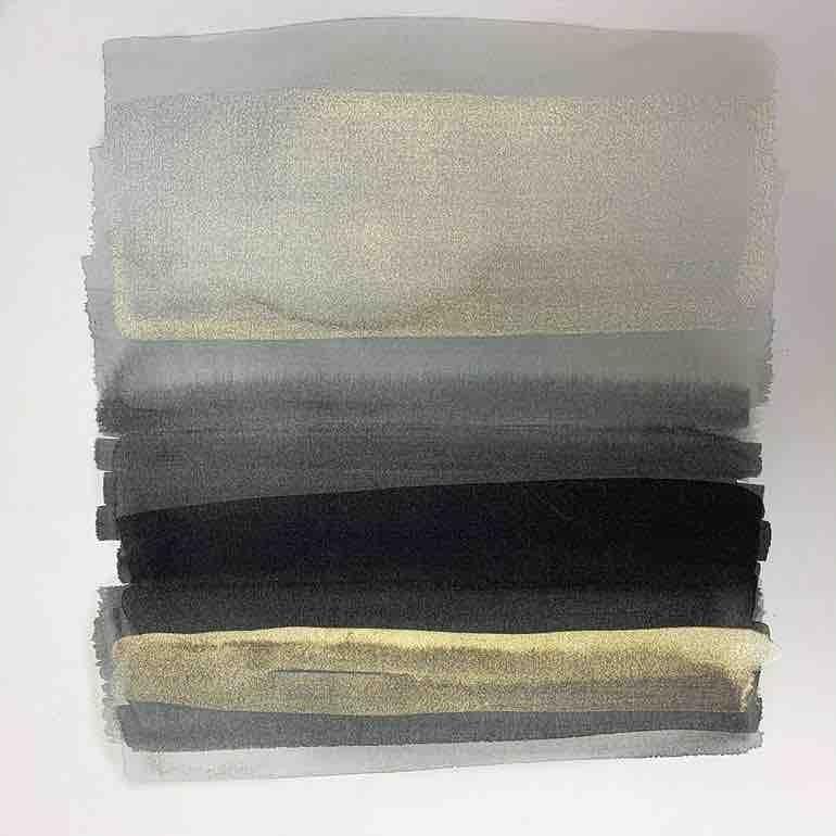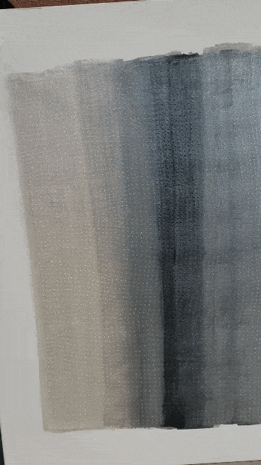 Each piece is worked with 2 - 10 others of like colors and must dry fully between color cycles. This usually takes 3 - 4 days. I prefer to spread out over a large studio so the paintings won't be disturbed. During their dry, the paint evaporates and becomes the next layer of the final piece.