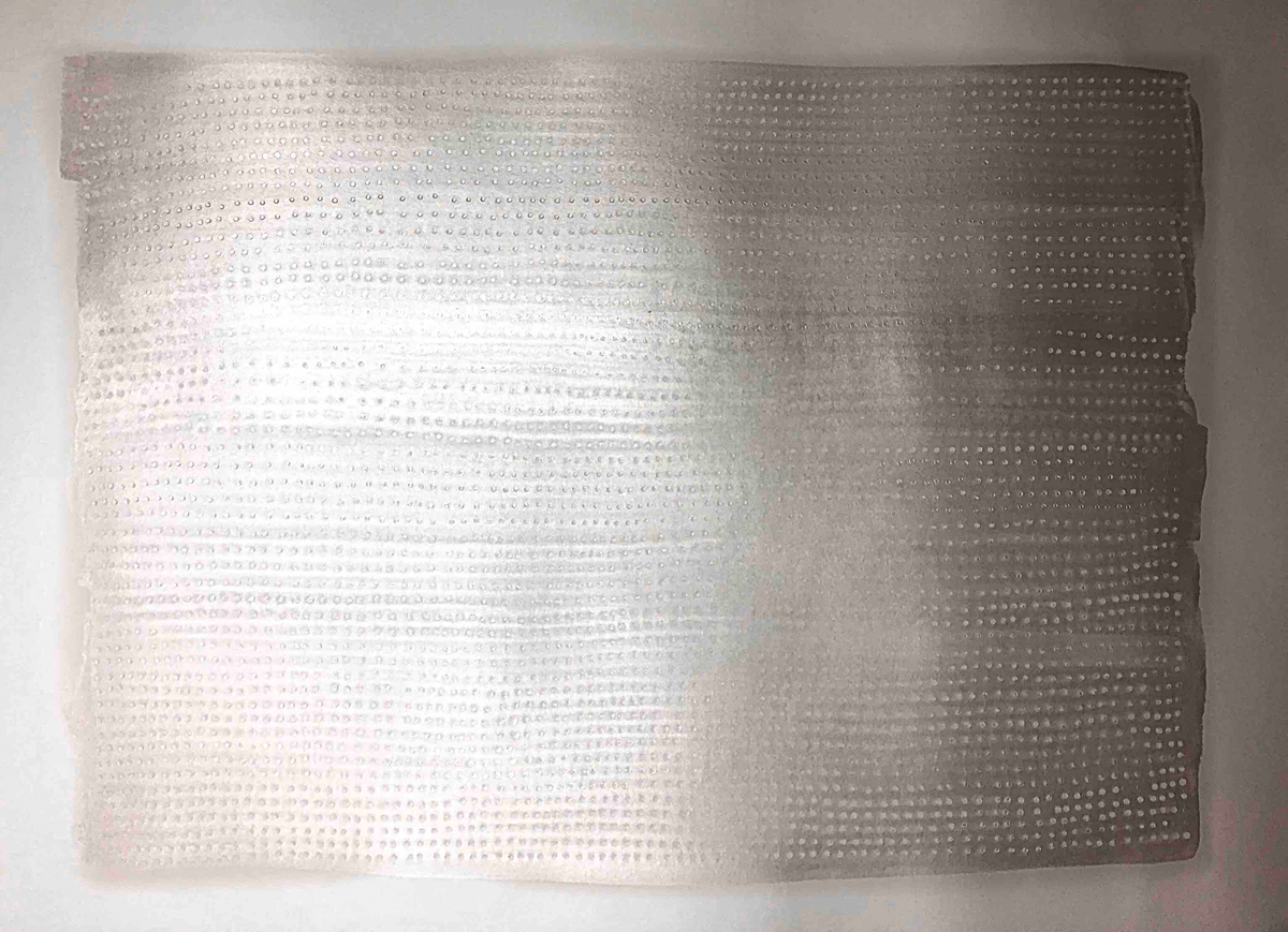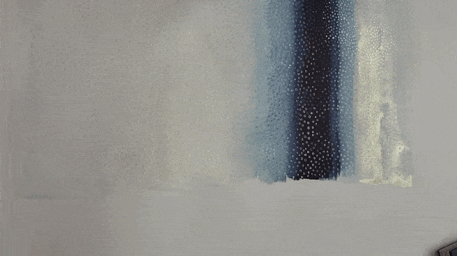 The patterns are laid in using a latex white, and despite much experimentation, the best resist is still Jackson Pollack's favorite, house paint. I also mix it with silk painting resists. This causes a ghosting and patterning around the resist, which is really beautiful and works perfectly with the paper.