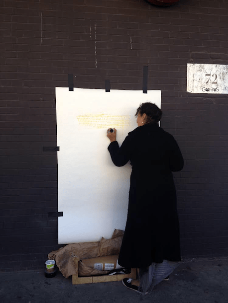 My largest influence has been Australian Aboriginal painters. Their commitment to the present moment and the idea of painting as a community story, is an important part of the process. I love the idea of the nothing that is the Outback, and how painters there have created an industry for themselves out of the stories of their lives and history. My favorite, Dorothy Napangardi and the other Napangardi sisters, have a painted language that echoes through time.